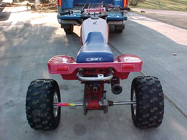 HERE ARE SOME PICS of my 85 350X, hi compression piston, +.040 over, DG EXHAUST, DURA BLUE CARRIER AND AXLE, NEW CEET COVER, ALL NEW TIRES, RENTHAL BARS