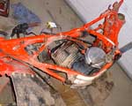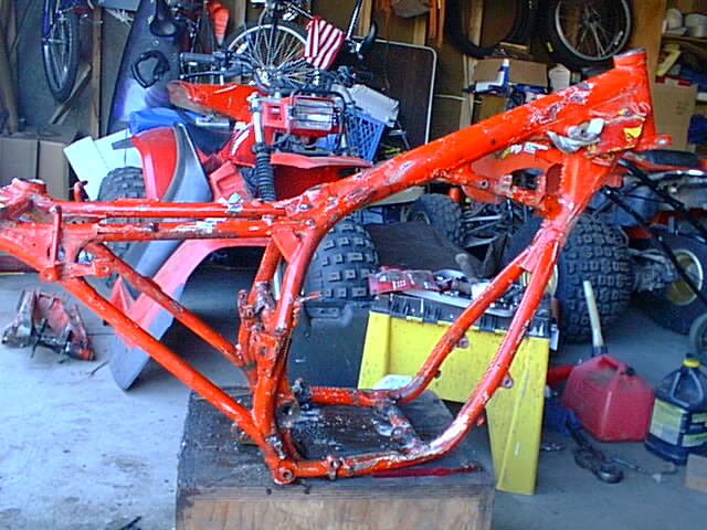 Here is the 83 250r I purchased for $100.00 It runs awsome but I decided to do a complete ground up restoration on her! She came with 250sx rear plastic (Not shown in Pictures) in not too bad of shape, the rear bearing carrier is pretty ugly though! The engine runs real well and transmision seams to be good also! So I decided to just clean the engine up real good and put her back in when I get everything else done! Items I purchased for this on e-bay include!