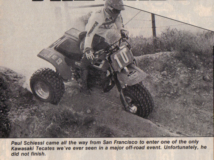 Paul Schiessi on a 1984 tecate in late '83 at the World Championship Hare and Hound. Tecates were rare in the desert.