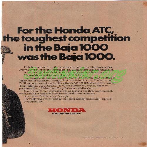Ad campaigns for Honda on the 1981 Baja 1000 Race