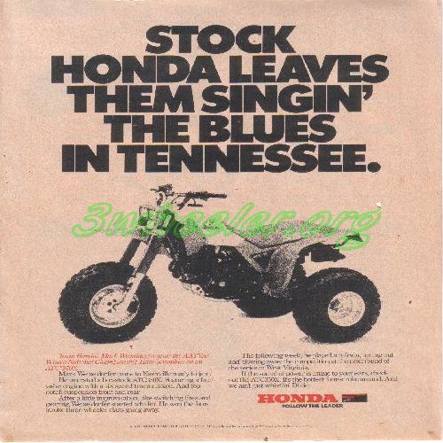 Honda's Biggest production 3wheeler the 350X was never meant to be a full on race trike. Honda learned from the 200 class when Kawasaki raced sleeved down 250 tecates and smoked the 200x's. Even Curtis Sparks couldn't catch the lighter quicker two strokes and besides Honda did have the ATC 500R awaiting production. It was just put on (permement) hold due to recent bad publicity in the press towards 3 wheelers. Never the less Honda wanted some race wins to advertise. So who better to send then Mark Weixeldorfer. "Wax" was Honda's workhorse. He was the one who tested and raced the Nick Nicholson ATC 500X. He helped design the first 250R's, raced in MX, flat track, desert, and along with Dean as their main test rider. How did "Wax" feel about racing the 350X? He wasn't to excited. After all he had to leave sunny Californa to go race in the mud of Tennessee on a unproven stock 4 stroke. So what did he do...he smoked em all so he could go home quicker and Honda never raced the 350X again.