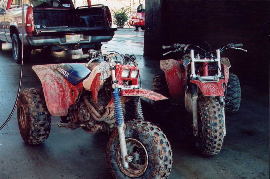 Here's the aftermath. That's my '85 350x on the left & Chris' '85 250R on the right.