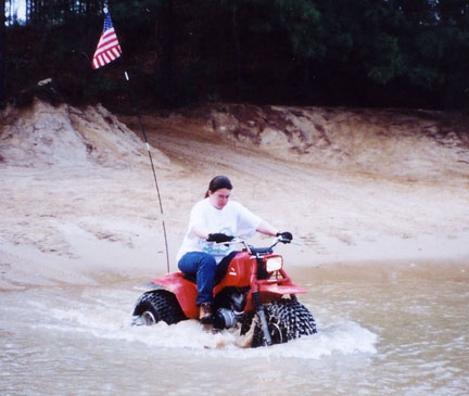Here's Cathy (Stouttrout's wife) at the creek you had to cross to get to the dunes.