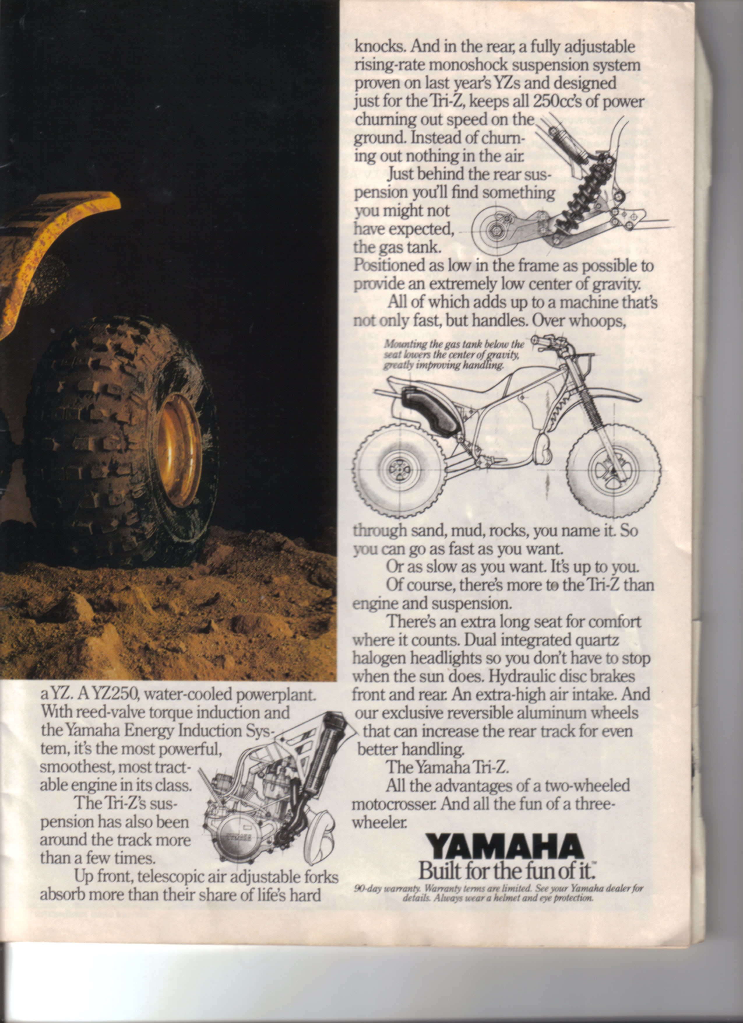 Partial Ad for the 1985 Tri-Z As always click on the Photo For even better view please click on each picture they will bring up much larger picts, making readable!