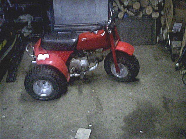 it is a 1985.I put a new carburater and a twist tratole on it.i'm purchising new tires soon.it has a lot of power for a seventy.its good for about 70 KM"not to bad".i call it a little red insted of a bigred