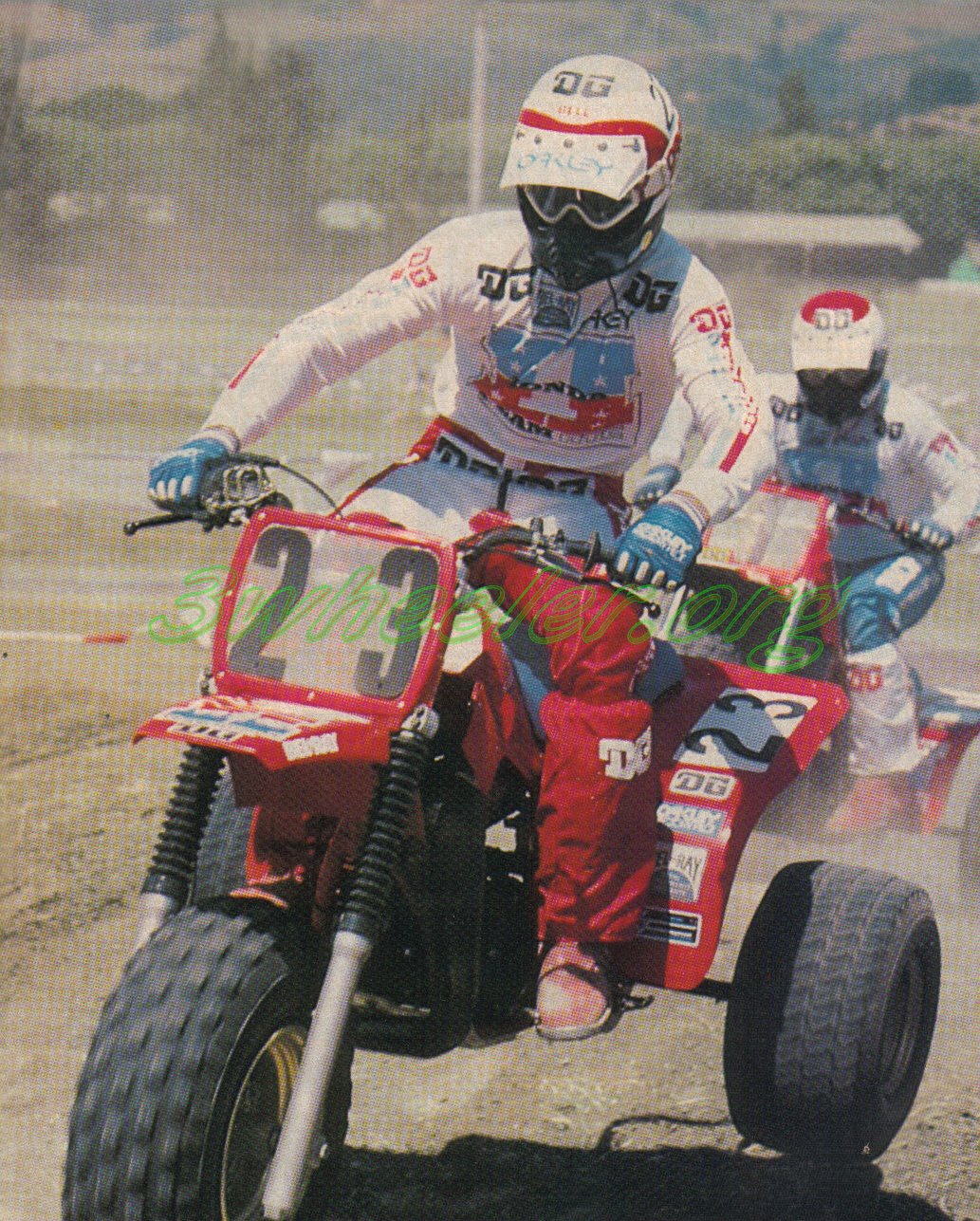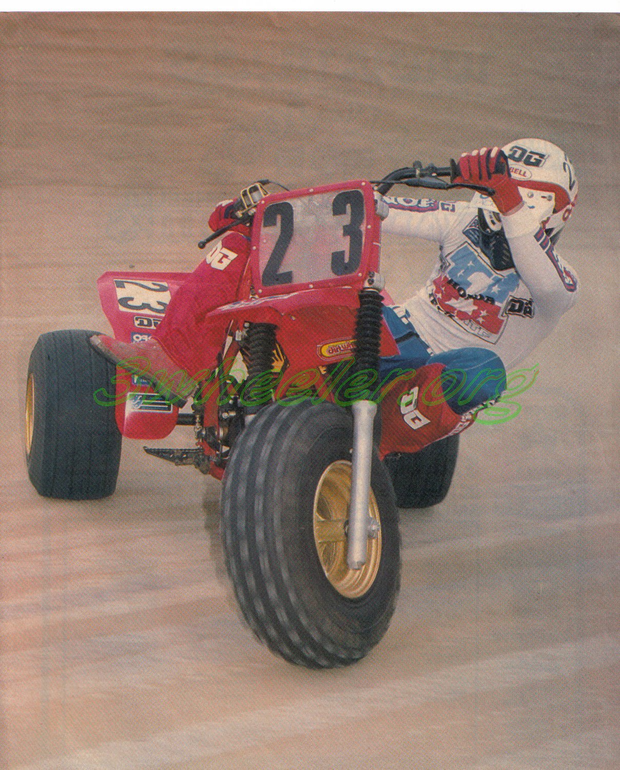Pict 3 Dean Sundahl doing a burnout literally before a race. the aluminum tank scoops and low profile rear fenders came from SRP or Sundahl Racing Products. A lot of team Honda riders helped build parts for their machines. "Wax" designed the desert seats, Curtis sparks pretty much built his 185's himself and did his own motors his whole career