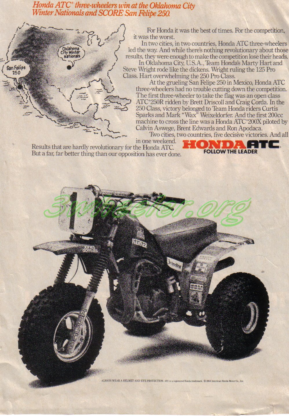 This is the campaign ad for the 1984 San Felipe Race Showing wins held in Oklahoma City and San Felipe . As always click on the Photo For even better view please click on each picture they will bring up much larger picts, making readable!